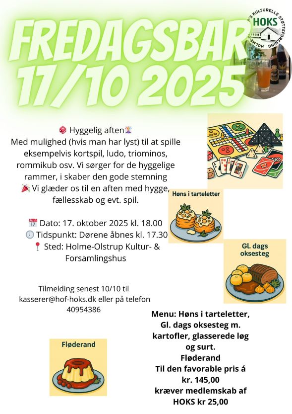 Fredag d. 17. oktober 2025 kl. 18:00 til 22:00